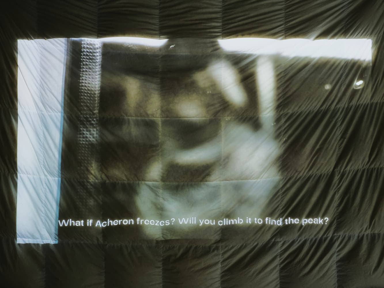 Ice climbing seems so extreme that it can only be understood as a compulsion to overcome oneself, again and again. Every new route is like a demented death ritual to attain some higher consciousness in an accelerationist samsara. Imagine a climber hacking into a frozen waterfall for a hold. At what point will the ice yield and shatter into a million pieces, and when will extreme tendencies like this drive global warming to the point of iceless winters?
