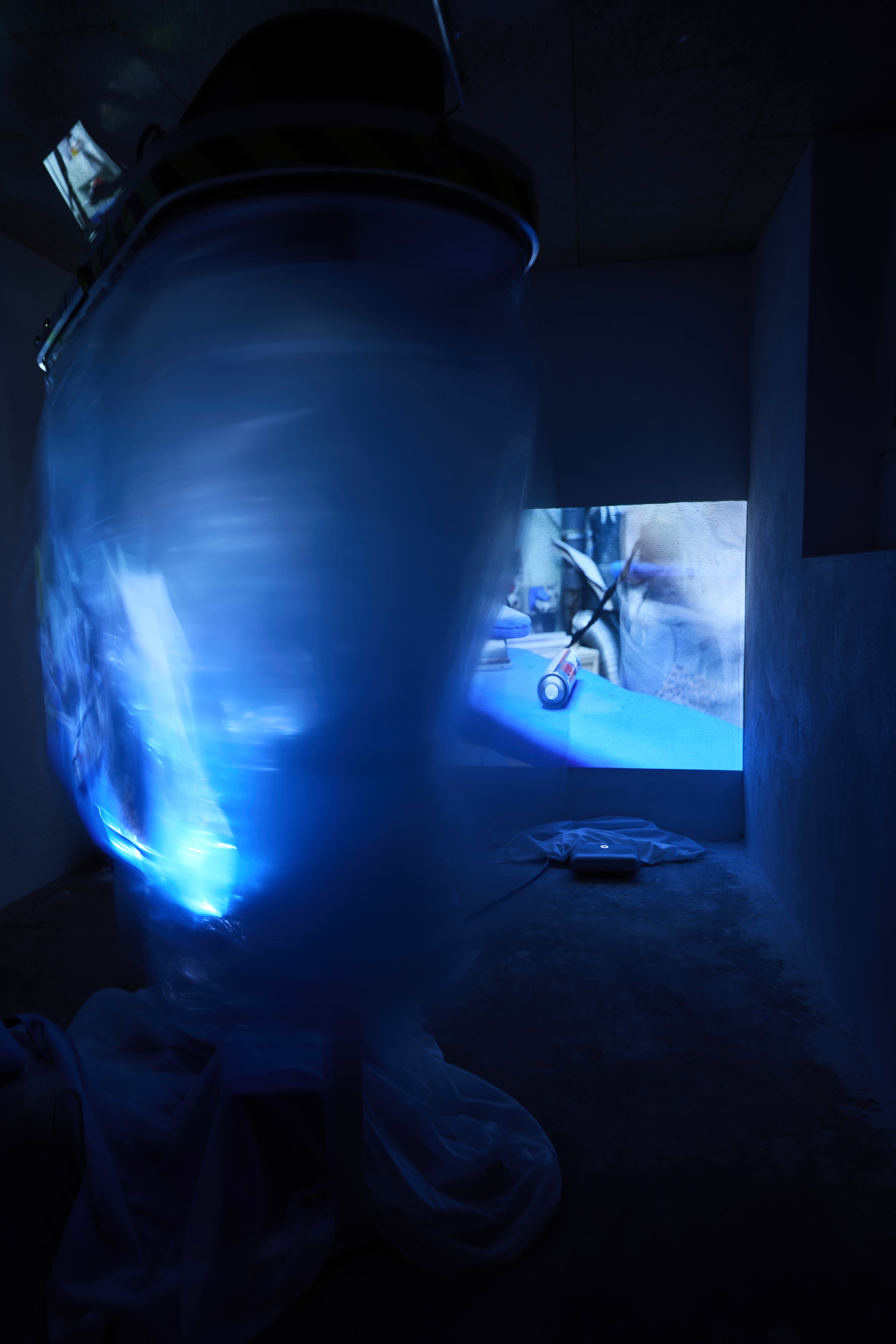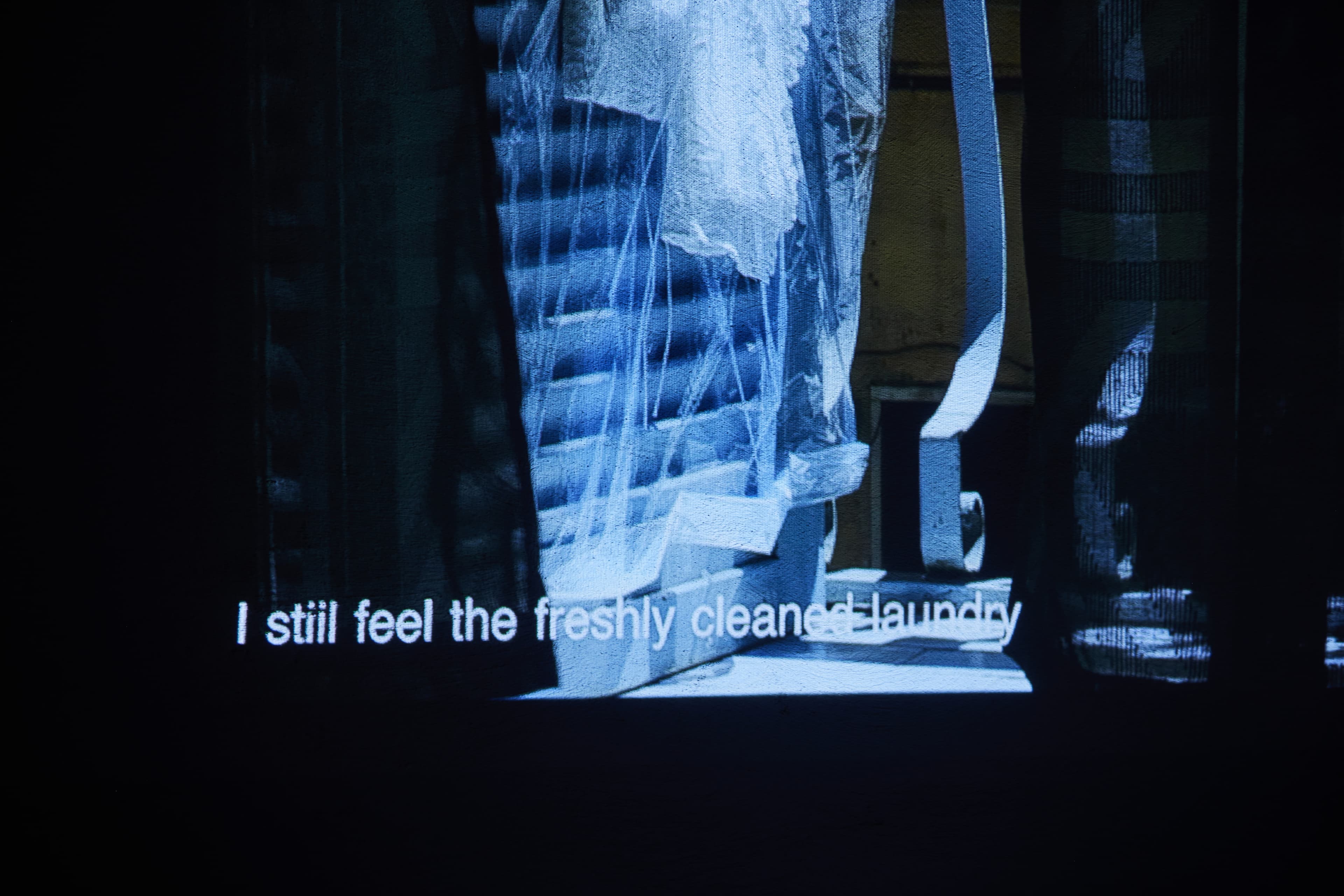 dry cleaner, the video installation follows a multi-stage cleansing ritual in which